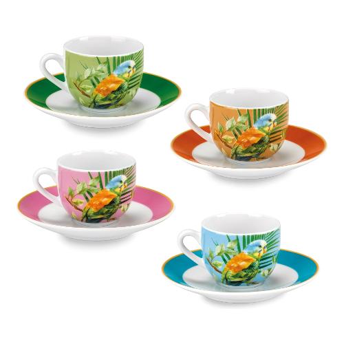 Set tazzine caffè porcellana con piatto 4 pz (100ml) PARROT Decorato multicolore 59125