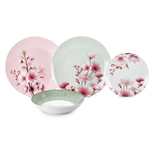 Servizio piatti Porcellana 18 pz SPRING Verde e Rosa 59134