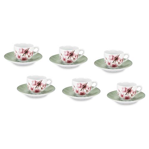 Set tazzine caffè porcellana con piatto 6 pz (100ml) SPRING Rosa e Verde 59135