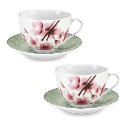 Set tazze porcellana con piatto 2 pz (370ml) da colazione SPRING Rosa e Verde 59136