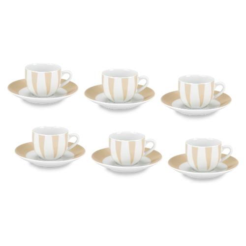 Fade Set tazzine caffè porcellana con piatto 6 pz (100ml) GEOMETRIC Bianco e Beige 59142