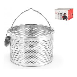 Cestello forato in acciaio inox pensato per bollire ortaggi, legumi, verdure a foglia e per cuocere la pasta. Il manico permette di sollevare ed estrarre agevolmente il cestello dalla pentola a cottura ultimata