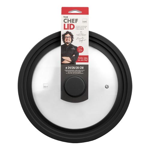 Coperchio adattabile a tre diversi diamteri . il suo profilo in silicone con le scanalature permette di utilizzarlo su pentole e padelle con un diametro di 24, 26 e 28 cm, un solo coperchio per più misure! Realizzato in vetro trasparente per controllare il cibo in cottura con foro per lo sfiato vapore.