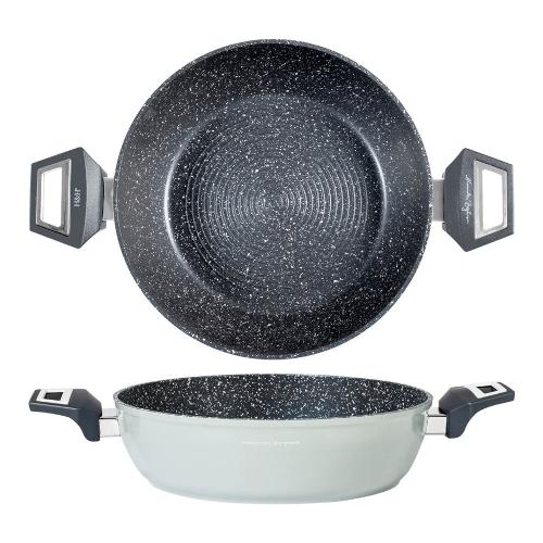 Tegame Gourmet in alluminio coniato ø 28 cm con rivestimento antiaderente Pfluon con Spirale 3D Non-Stick Technology e manico soft-touch con fondo adatto anche per vetro ceramica e piani ad induzione . All'interno i preziosi "Kitchen Tips" di chef Alessandro Borghese: ricette, consigli, segreti e tanti disegni da conservare e collezionare.
