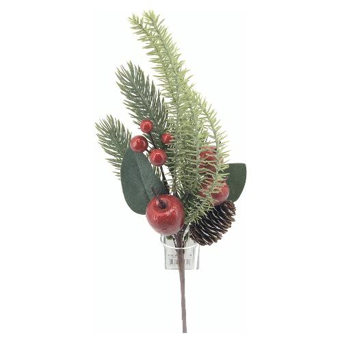Pick Bacche con pino (37cm) Verde e Rosso 03270