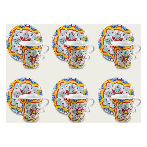 Ar.Ca. Set tazzine caffè porcellana con piatto 6 pz Granada Multicolor 56955