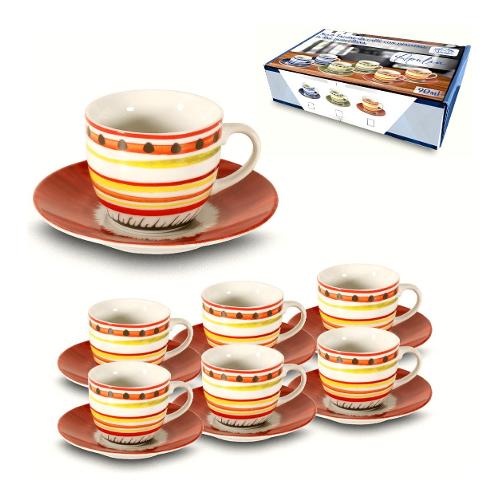 Set tazzine caffè porcellana con piatto 6 pz (90ml) APULIA Rosso e Giallo 70133