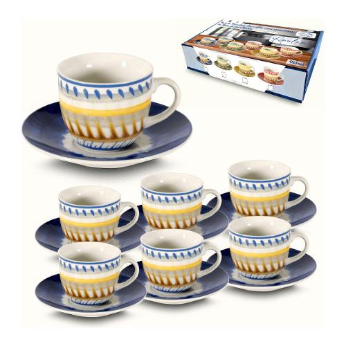 Ar.Ca. Set tazzine caffè porcellana con piatto 6 pz (90ml) APULIA Blu e Giallo 70138