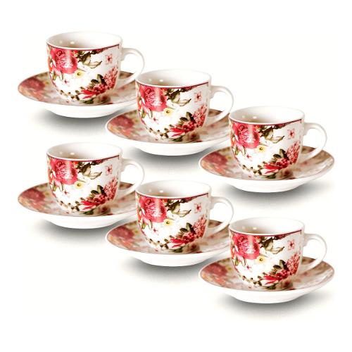 Set tazzine caffè porcellana con piatto 6 pz (90ml) Victoria FLOWERS Bianco decorato 70254