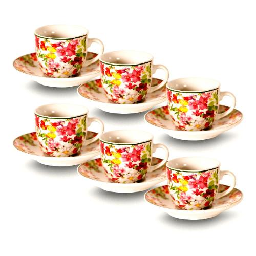 Ar.Ca. Set tazzine caffè porcellana con piatto 6 pz (90ml) Spring FLOWERS Bianco decorato 70257