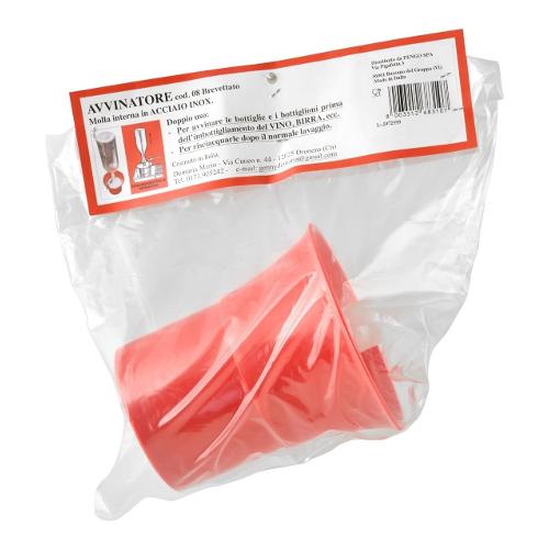 Uso: riempire con il vino l'avvinatore fino al superamento del filtro, appoggiare la bottiglia o il bottiglione e premere con forza.