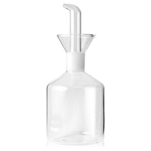 Ampolla cilindrica per olio o aceto dotata di erogatore con beccuccio antigoccia. grazie al quale è possibile dosare perfettamente i condimenti preferiti.