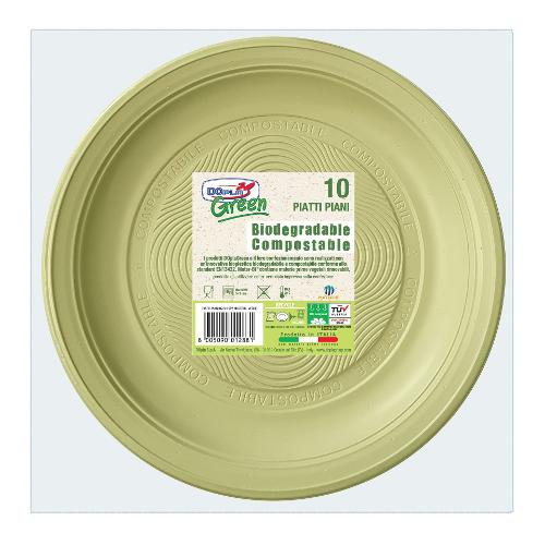 Set piatti piani monouso (22cm) BIO GREEN Verde 40009