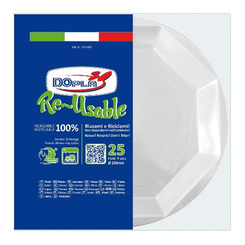 Dopla Set piatti piani monouso 25 pz (22cm) RE USABLE 12507
