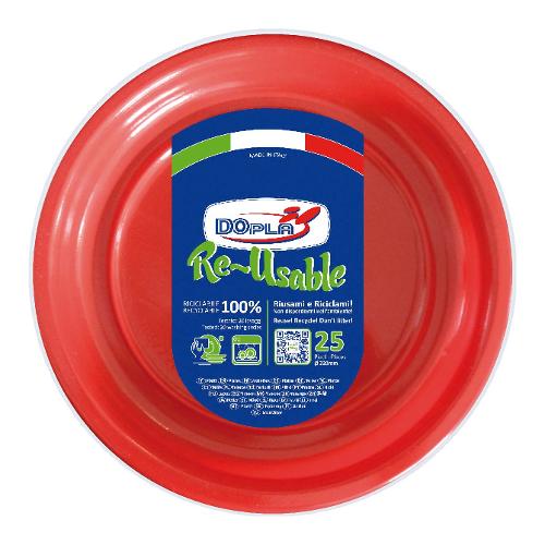 Dopla Set piatti piani monouso 25 pz (22cm) RE USABLE Rosso 11839