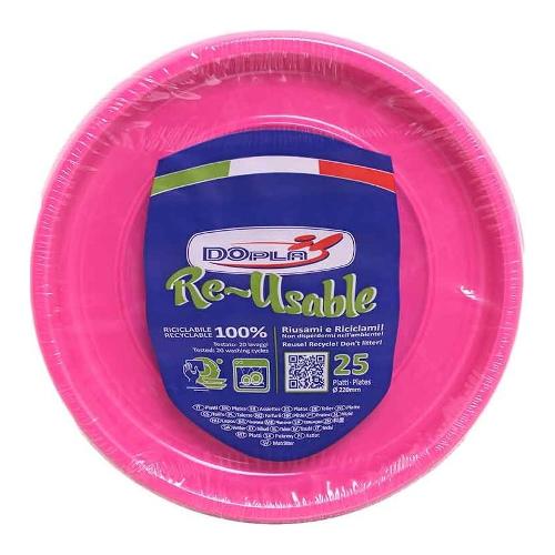 Set piatti piani monouso 25 pz (22cm) RE USABLE Fucsia 11831