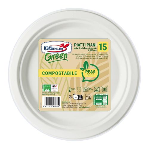 Dopla Set piatti piani monouso 15 pz (22cm) BIO GREEN 07901