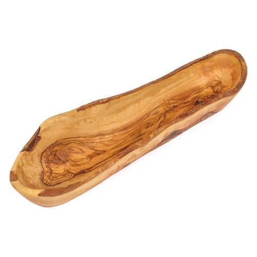 Ciotola rustica a barchetta in legno di ulivo massello.