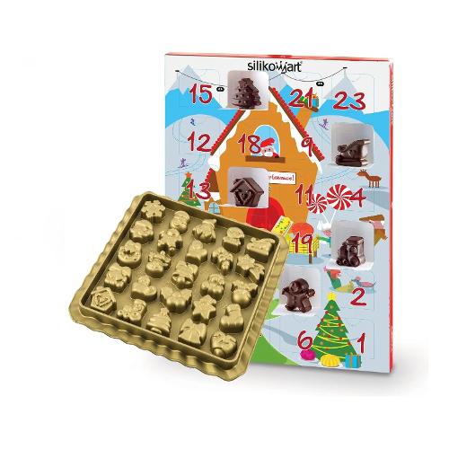 Creative xmas countdown è lo stampo in silicone accompagnato da una colorata scatola per realizzare un originale calendario dell' avvento fai da te. Volume totale: 1405 ml suddiviso in 25 forme