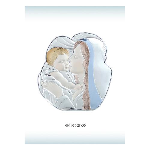Icona Argento (26x31cm) MADONNA CON BAMBINO Silver e Color 041 30