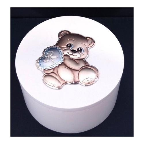 Cofanetto legno con decoro laminato argento (10cm) ORSETTO Azzurro 4006 17