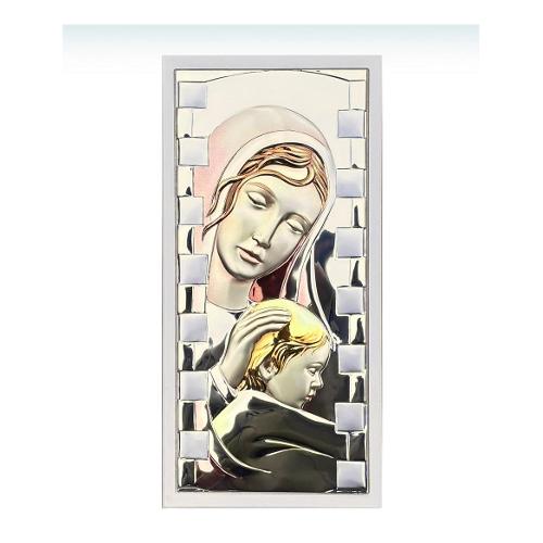 Icona Argento (17,5x36,5cm) MADONNA CON BAMBINO Bianco e Silver 051 35