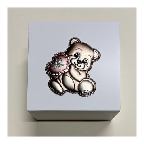 Cofanetto legno con decoro laminato argento (10x10x6cm) ORSETTO Silver e Rosa 4007 17Q