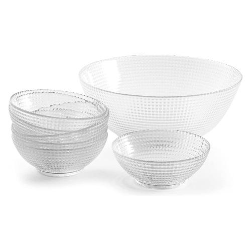 Set macedonia composto da 6 coppette 360 ml (d.13x5 cm) e ciotola grande 2400 ml (d.24x9,5 cm)