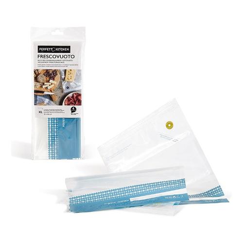 REFILL XL Buste alimentari Frescovuoto di grandi dimensioni con chiusura e valvola, per conservare sottovuoto cibi freschi e secchi. Da utilizzare con Frescovuoto Pump. senza BISFENOLO ( BPA free). Confezione da 4 buste XL cm 30 x 34