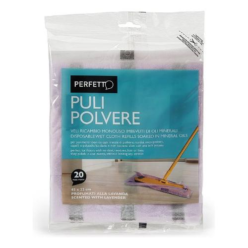 Veli ricambio monouso imbevuti di oli minerali. Per pavimenti liberi da ogni traccia di polvere, residui, micropolvere, capelli e pelucchi, lucidano e non lasciano aloni con una sola passata.
