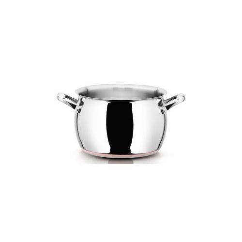 Pentola labond con profilo arrotondato salvagoccia, fondo 5 strati con un cuore di rame racchiuso tra due strati di alluminio e acciaio, manico atermico ed ergonomico in fusione d'acciaio, adatto all'utilizzo in forno