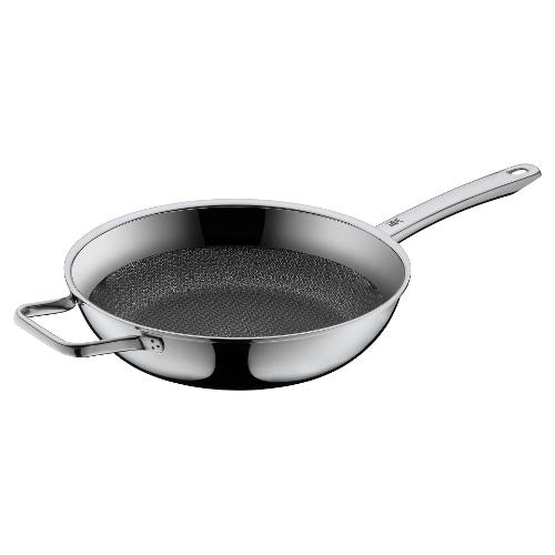 Utilizzabile su tutte le fonti di calore. Il cuore della padella è in alluminio, l'interno è in acciaio inossidabile (cromargan) con un rivestimento privo di pfoa e l'esterno è in acciaio cromato. Questo rende la padella non solo molto forte, ma anche resistente a temperature fino a 260 gradi celsius e ha una distribuzione del calore ideale. Il manico freddo facilita la presa della padella durante la cottura.