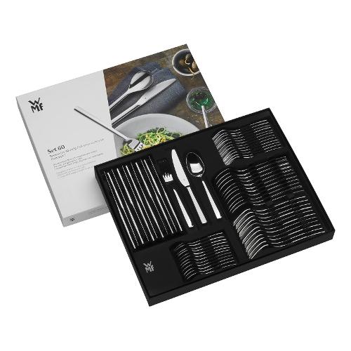 Rendi ogni esperienza culinaria accattivante. Con le posate Palermo di WMF, le proporzioni contemporanee incontrano contorni netti e precisi. Il design elegantemente moderno è realizzato in acciaio inossidabile Cromargan® 18/10 di alta qualità, per una durata eccezionale con un'estetica squisita che non smette mai di stupire. Sapientemente realizzato con cura, questo set di posate ergonomico si adatta perfettamente a ogni mano ed è prodotto con tutta l'abilità e il know-how che hanno reso noto il brand WMF. I coltelli sono forgiati da un unico pezzo di acciaio inox poi temprato nel suo insieme. Sono inoltre dotati di un bordo seghettato appositamente progettato che garantisce un'affilatura duratura e un taglio perfetto. Il set include 12 cucchiai, 12 forchette, 12 coltelli, 12 cucchiaini e 12 forchettinde dolce