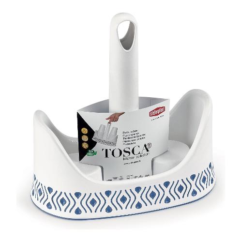 Portabicchieri in plastica, con bordo rialzato e supporto anticaduta interno a protezione dei bicchieri monouso. Decorato con particolari intarsi in color tortora e palace blu. Può essere facilmente spostato grazie alla presa dinamica, tutto realizzato in materiali di alta qualità, bpa free
