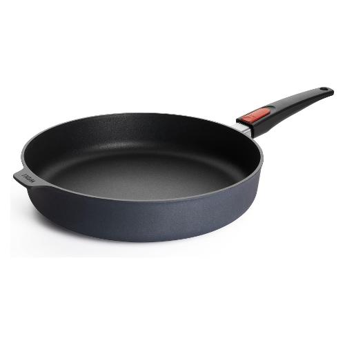 Padella alta antiaderente con bordo rinforzato, adatta a tutti i tipi di cucine. La base termica di circa 6 mm di spessore permette un ottimo accumulo di calore senza deformarsi al contatto con alte temperature. Manico rimovibile comodo e sicuro.