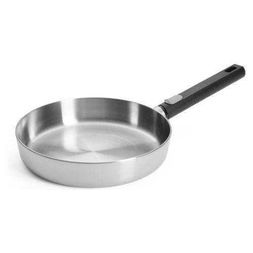 Una caratteristica speciale di questa serie è il manico removibile, che offre non solo maggiore flessibilità, ma anche sicurezza e praticità nella cucina di tutti i giorni. Senza manico, la padella piatta è adatta al forno fino a 300 °C e si trasforma in un attimo in una versatile pirofila, perfetta per gratin, tarte flambée o per rosolare la carne da terminare poi in forno. Dopo la cottura, la padella può essere facilmente riposta in un armadio, in forno o in lavastoviglie senza manico, risparmiando spazio, rendendola sicura per i bambini e preservandone l'aspetto elegante.