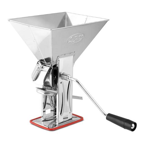 Spremipomodoro in acciaio inox con guarnizione salvatavolo in plastica e morsetto per il fissaggio. Costruito in acciaio inox 18/c. Rullo in alluminio. Retina in acciaio inox 18/10.