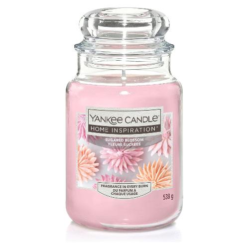 Yankee candle home inspiration propone fragranze accessibili e di qualità da vivere ogni giorno con la famiglia e gli amici. Sugared blossom è un profumo che riempirà la tua casa con un interessante mix tra il dolce aroma dei fiori e la delicata glassa! Una fragranza dolciastra arricchita da note di mandorle candite, gelsomino, canna da zucchero e vaniglia. Una volta accesa ha una durata di 90 - 120 ore