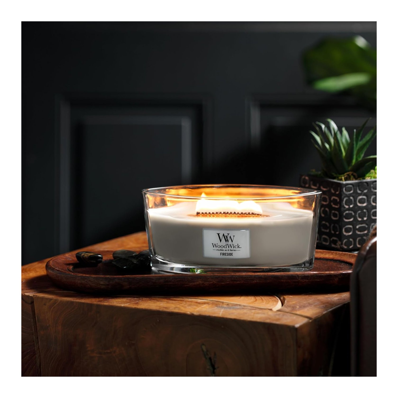 Le candele a forma ellittica woodwick® infondono nella vostra casa profumazioni sofisticate con il dolce crepitio di uno stoppino in legno naturale crackles as it burns. Il caratteristico crepitio e la sinuosa fiamma danzante delle candele di forma ellittica woodwick® sono frutto della tecnologia brevettata hearthwick® flame. Abbandonate i vostri sensi al piacere di un’intesa fragranza, di uno stoppino che regala un dolce crepitio e di un elegante contenitore in vetro a forma di goccia, che ricreano il raffinato bagliore di un caminetto in qualsiasi stanza della vostra casa.