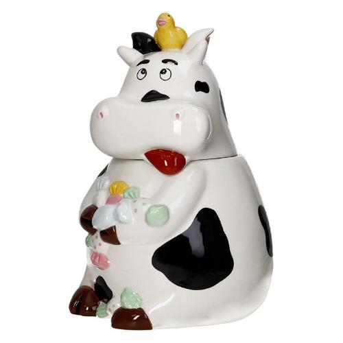 Brandani Barattolo ceramica (20x18x30cm) Mucca con sensore sonoro Bianco e Nero 57470