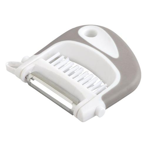 Le nuove collezioni brandani dedicano ampio spazio a tutti quegli utensili da cucina che rispondono a più funzioni. Il nuovo pelino universale, non a caso, è un concentrato di praticità ed efficienza in un grazioso accessorio da cucina che renderà più semplici e veloci le tue preparazioni. Tienilo ben saldo grazie alla comoda presa in tiffany o tortora, sbuccia ortaggi e verdure e spolvera i residui in eccesso. Da un lato, una pratica lama in acciaio inox; dall’altro, con una semplice roteazione, una comoda spazzola in nylon. E se non basta, prova anche il leva occhielli: un utile anello posto al lato del pelino che ti aiuterà a rimuovere le parti rovinate delle patate, senza sprechi