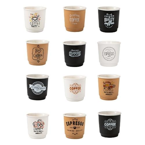 Tonalità gradevoli, a sposare un’anima in new bone china destinata a ritagliarsi un ruolo da protagonista in tavola. Il bicchierino caffè in colori e decori assortiti rappresenta il miglior compromesso per iniziare al meglio la giornata e condividere i momenti di break quotidiano