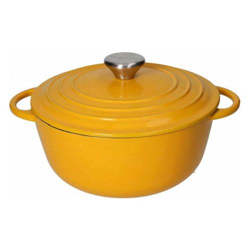 La ghisa smaltata è un robusto materiale che ben si adatta a svariati tipi di cotture. Particolarmente consigliata per processi lunghi ed a fuoco lento (così come per friggere) la ghisa occupa il primo posto sul podio in quanto a capacità di trattenimento del calore: una funzione incrementata dalla presenza del coperchio, che ben contiene il vapore naturalmente prodotto dalle pietanze! La nuova casseruola cocotte firmata brandani, riflette a pieno le caratteristiche appena citate.