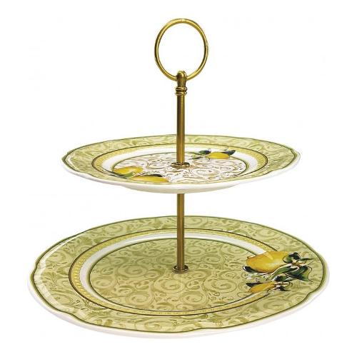Alzata (27x23cm) 2 piani LIMONI Verde e Giallo 52760