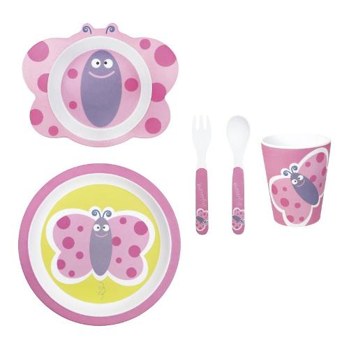 Set tavola bimbo Farfalla melamina 5 pz Lilla e Rosa 51544