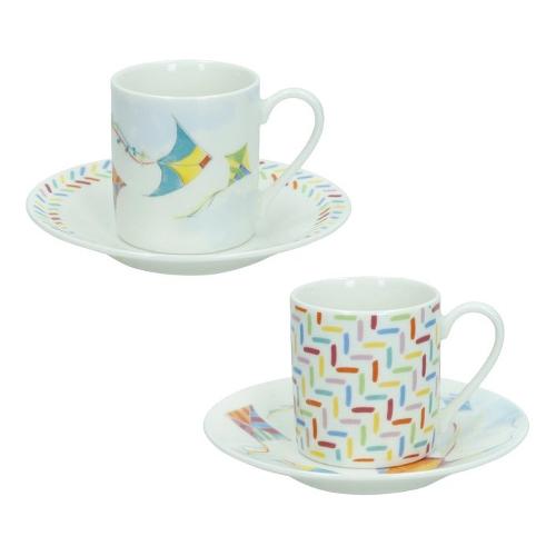 Set tazzine caffè bone china con piatto 2 pz (80ml) ARIA Multicolor 51714