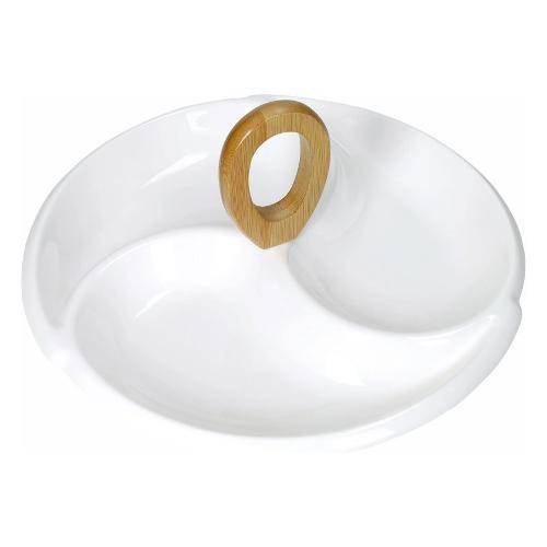 Antipastiera Porcellana (28cm) 3 posti STUZZICA Bianco e Bamboo 52973