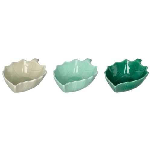 Set coppette Porcellana 3 pz (14,5x9,5x4,5cm) FOGLIA Colori assortiti 51934