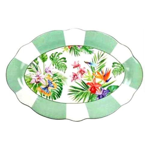 Piatto portata Bone China (36x26cm) ovale OASI Bianco e verde decorato 52033