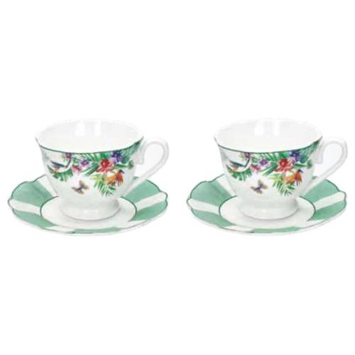 Brandani Set tazze te bone china con piatto 2 pz (9x7,5cm) OASI Bianco e verde decorato 52032